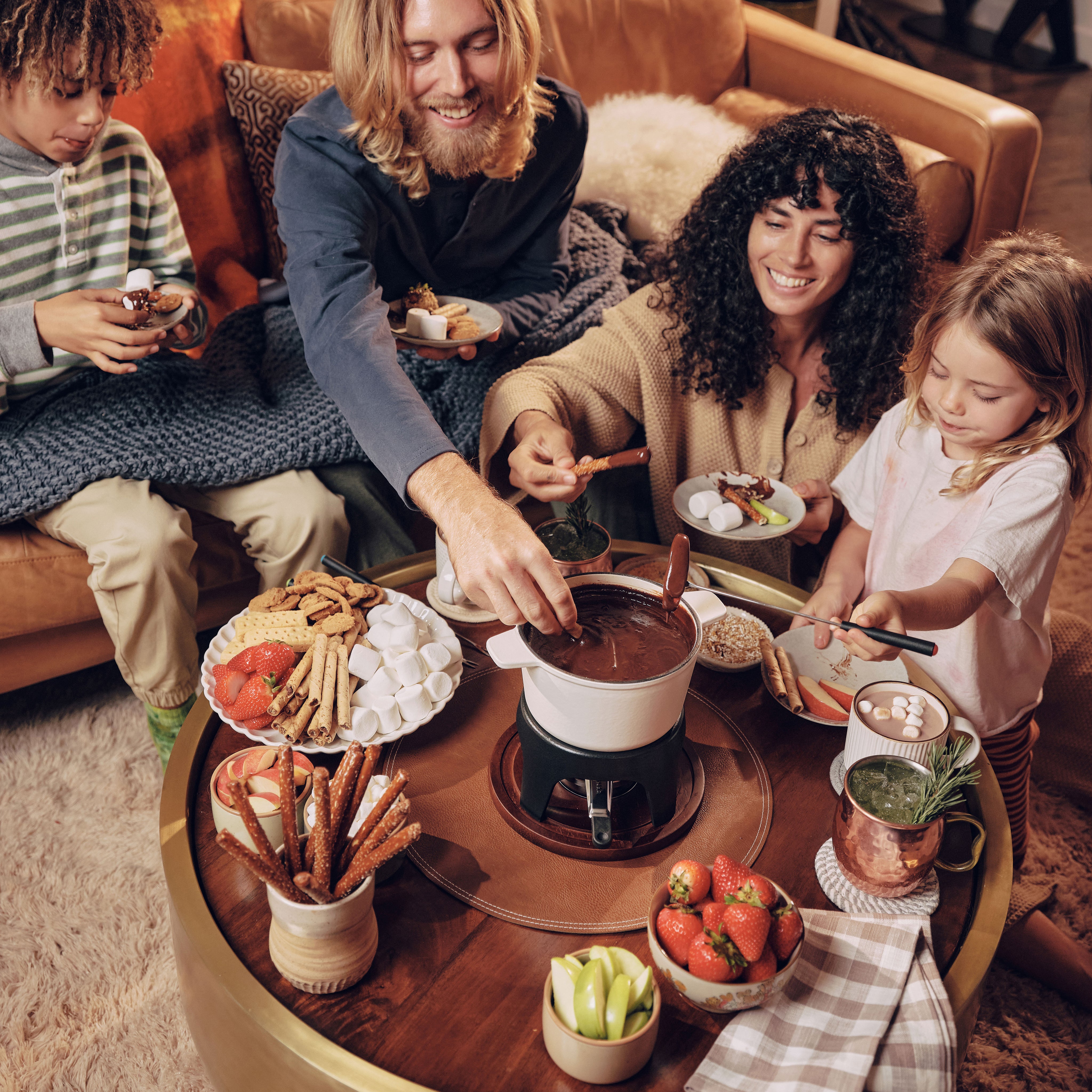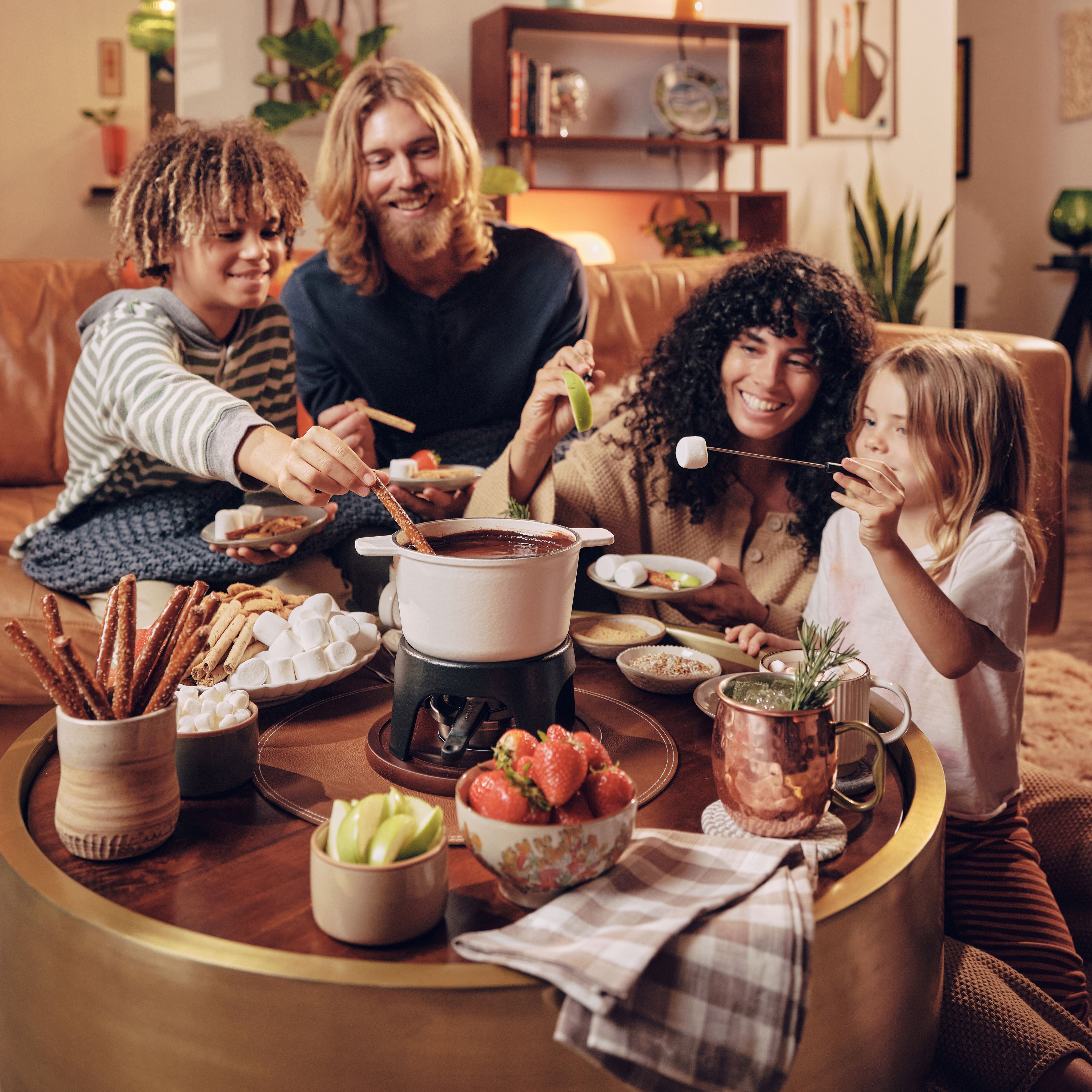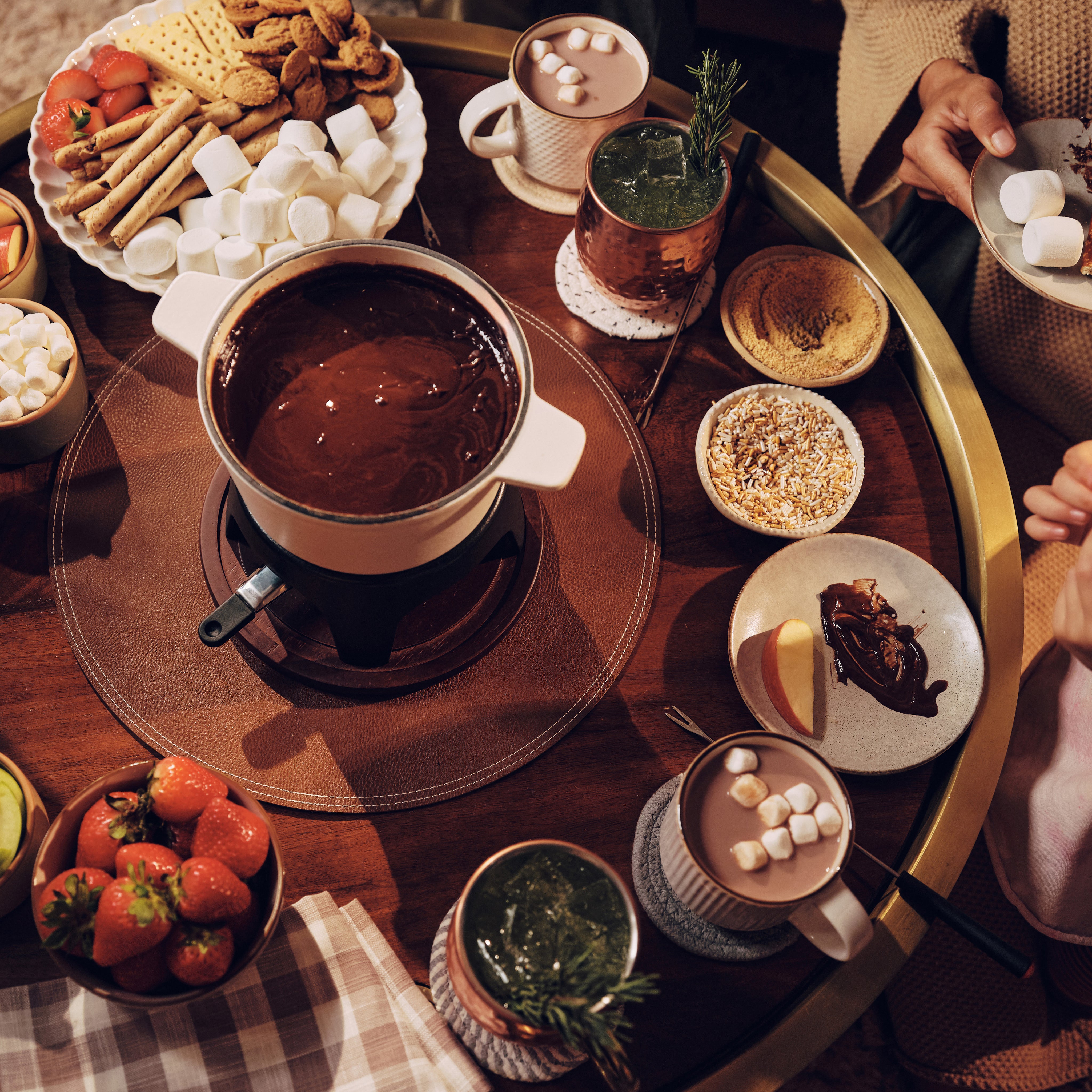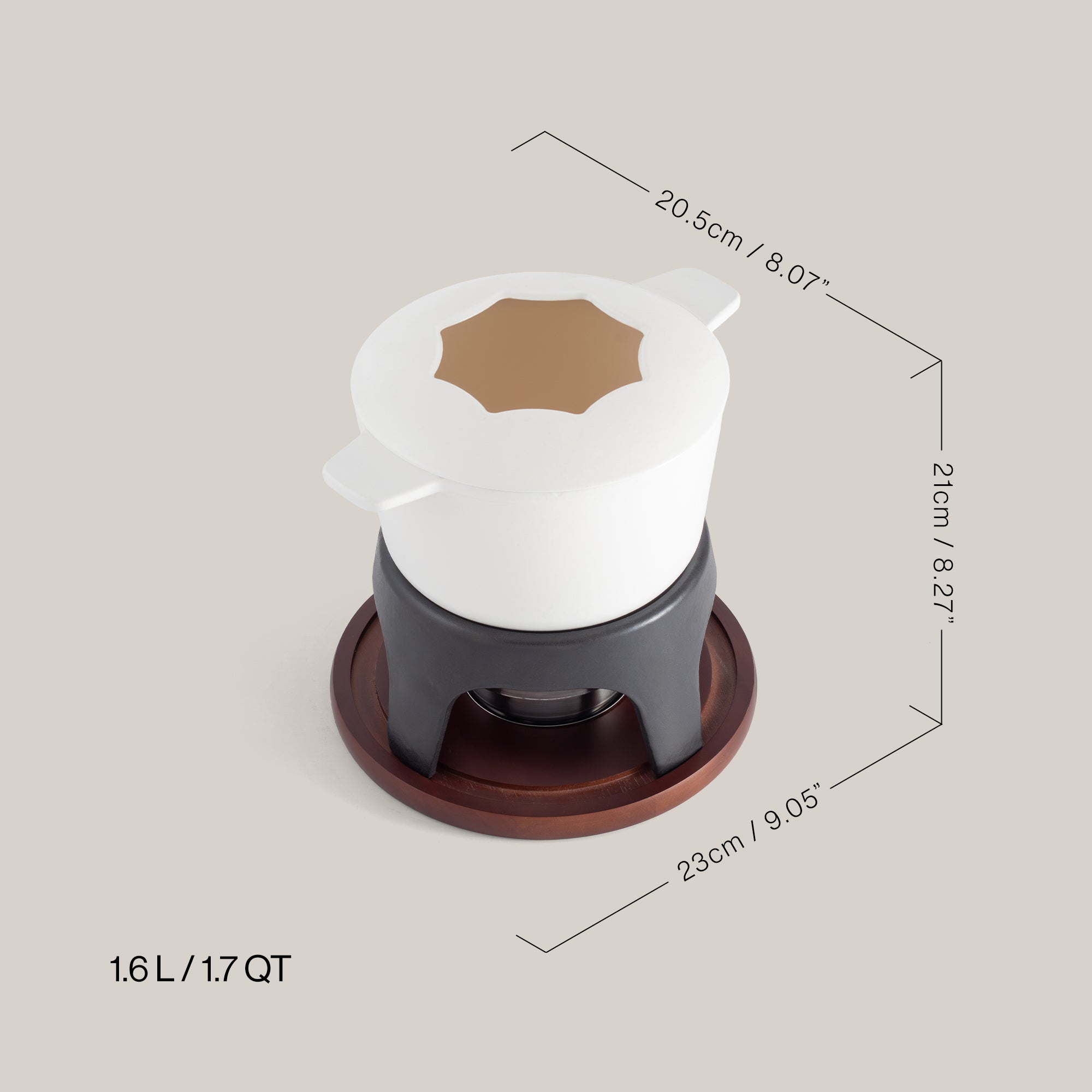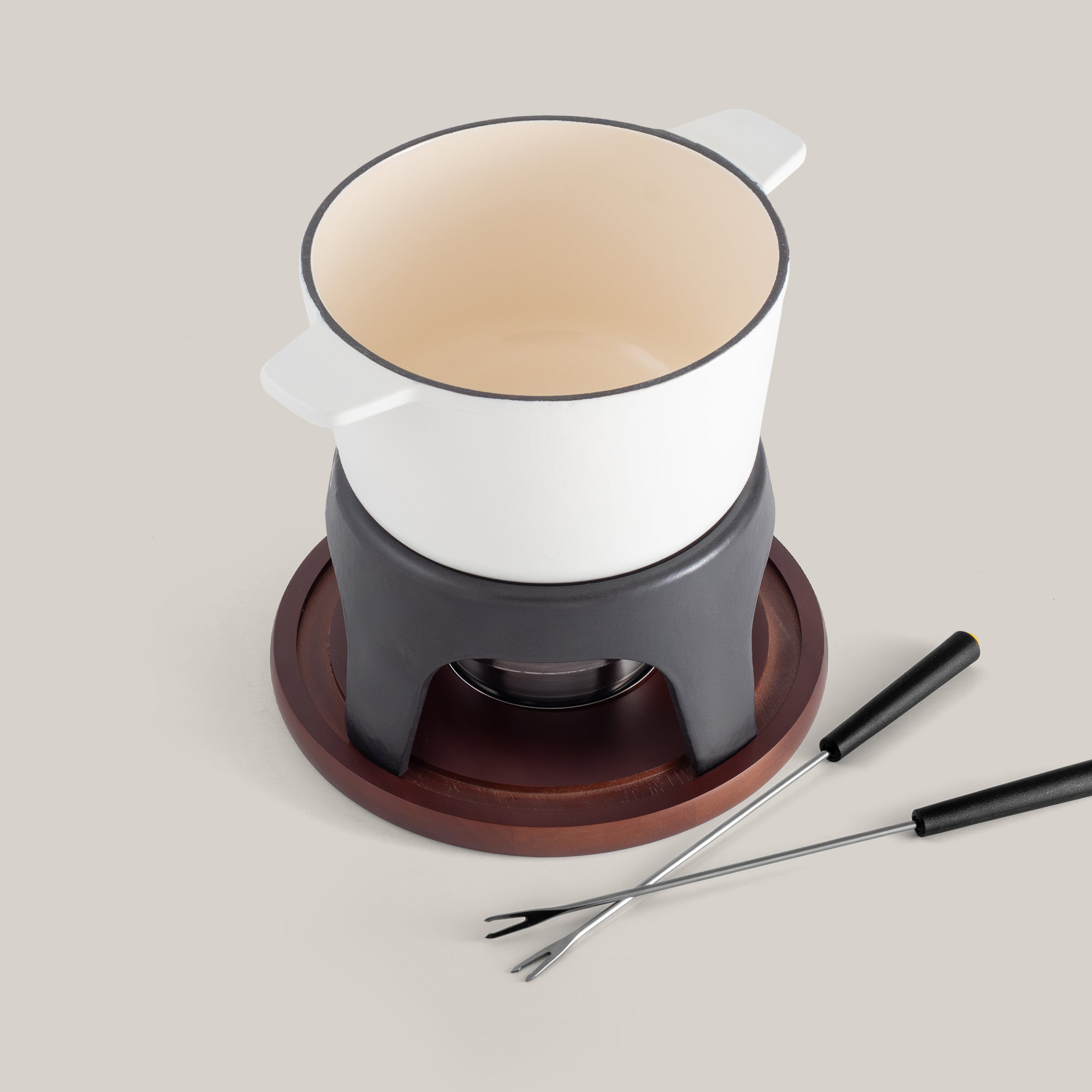 The Sierra fondue set is designed to deliver an authentic and enjoyable fondue experience. The 1.6 QT (1.51L) enameled cast iron pot ensures even heating and excellent heat retention, ideal for maintaining the perfect temperature for cheese, chocolate, or oil fondues. The classic white finish adds elegance to any dining table, blending seamlessly with your décor.