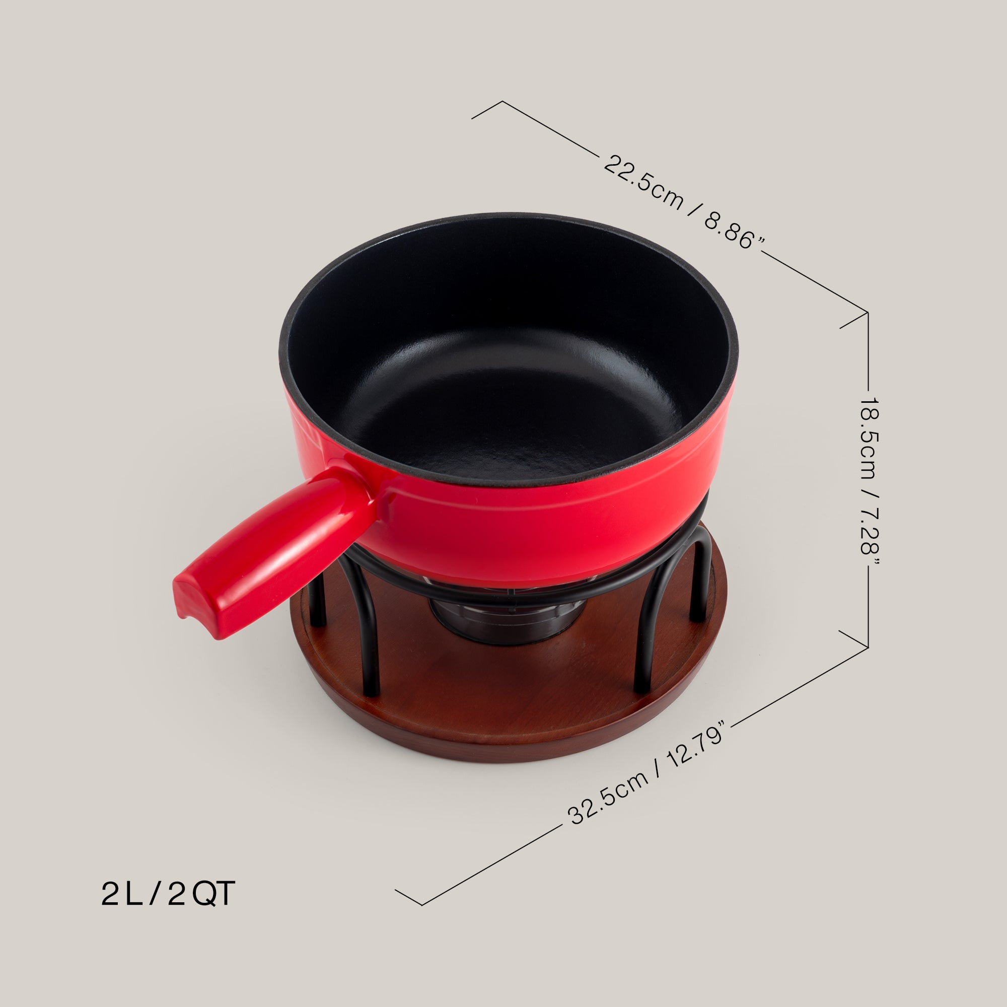 Cast iron construction ensures even heat distribution and excellent heat retention, delivering smooth, creamy cheese fondue every time.