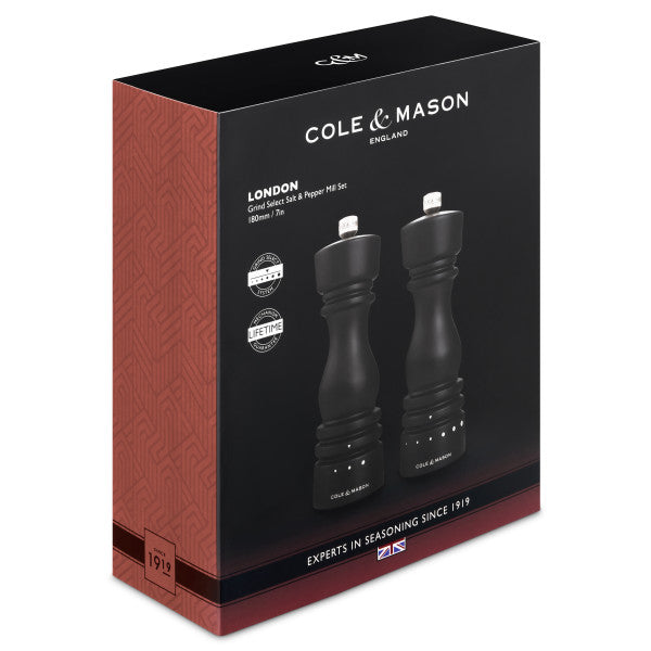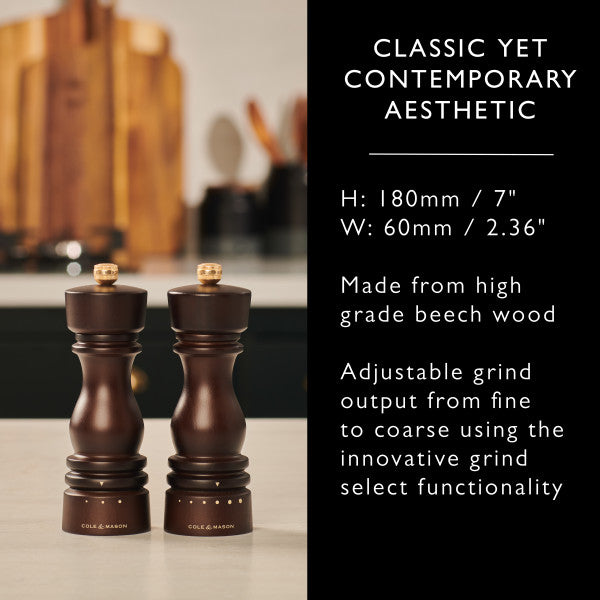 Salt and Pepper Mill | London | Chocolate Wood | Grind Select | 180mm / 7" | Cole & Mason