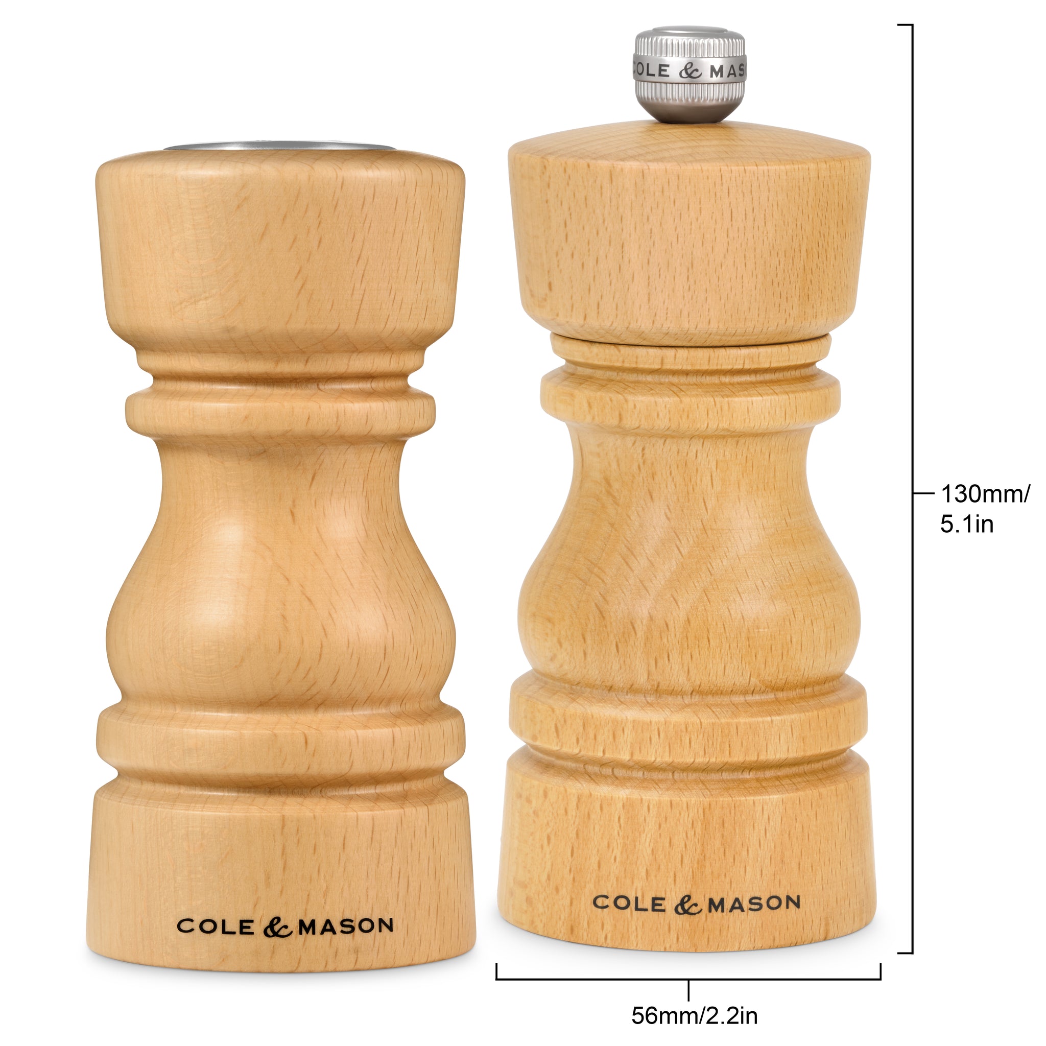 Salt Shaker & Pepper Mill Set | Natural Beech | 130mm / 5in | London | Cole & Mason