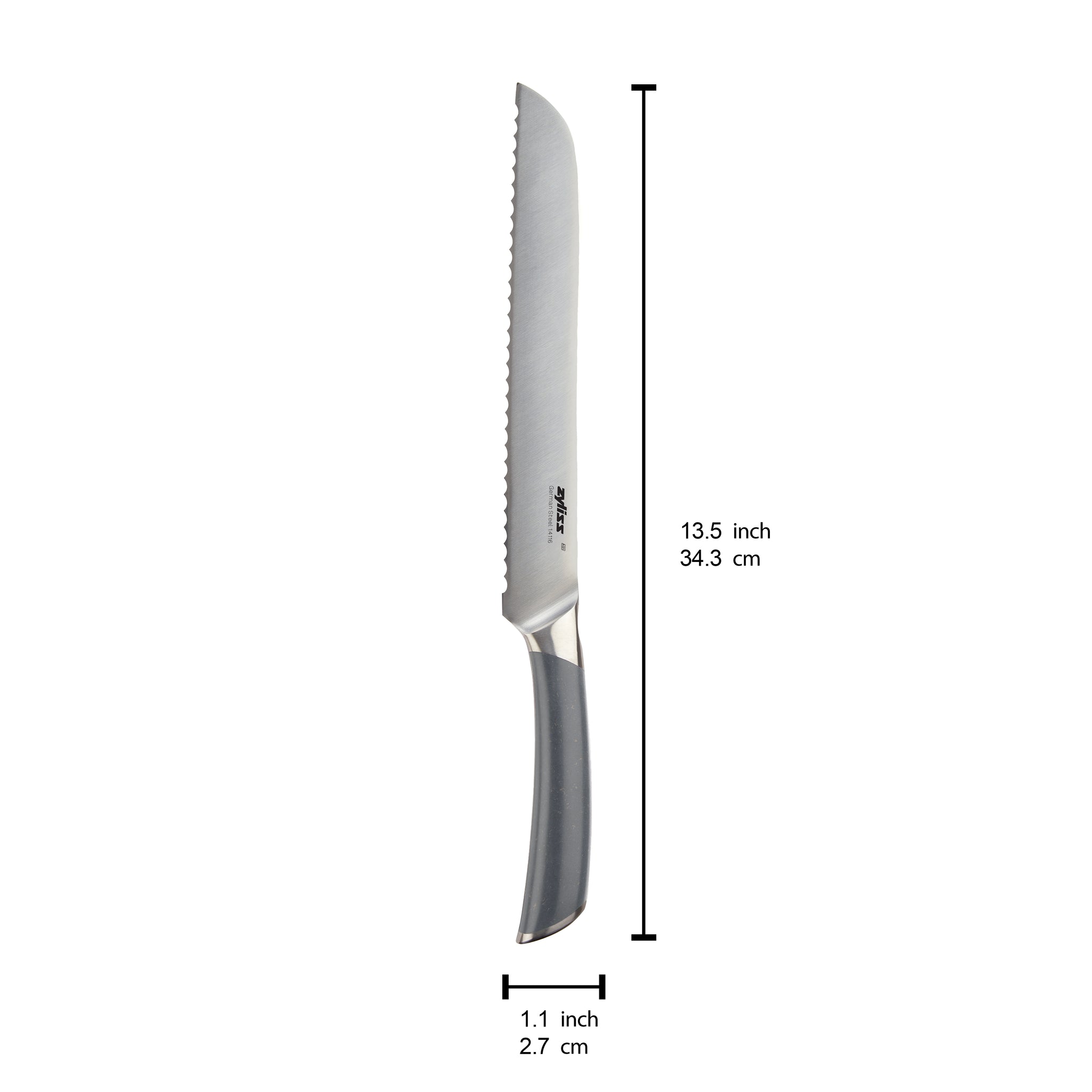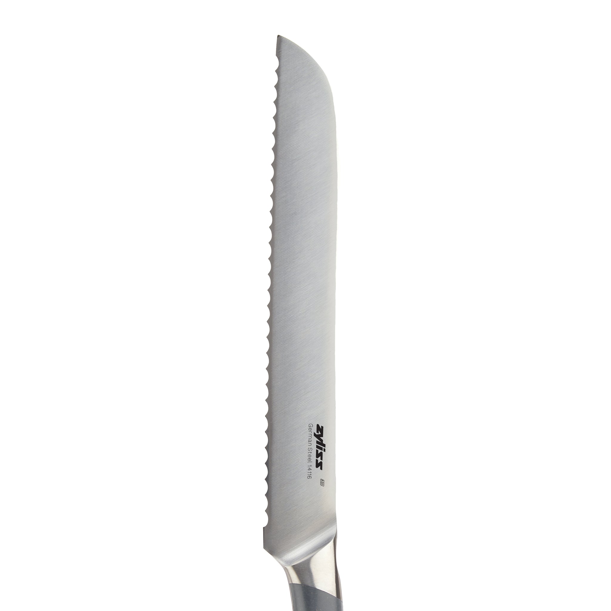 The Zyliss Comfort Pro Bread Knife (214.5mm / 8.44in) is engineered for clean, effortless slicing of all types of bread and baked goods. Its long, ice-hardened German stainless steel blade with precision serrations glides through crusty exteriors and soft interiors without crushing.