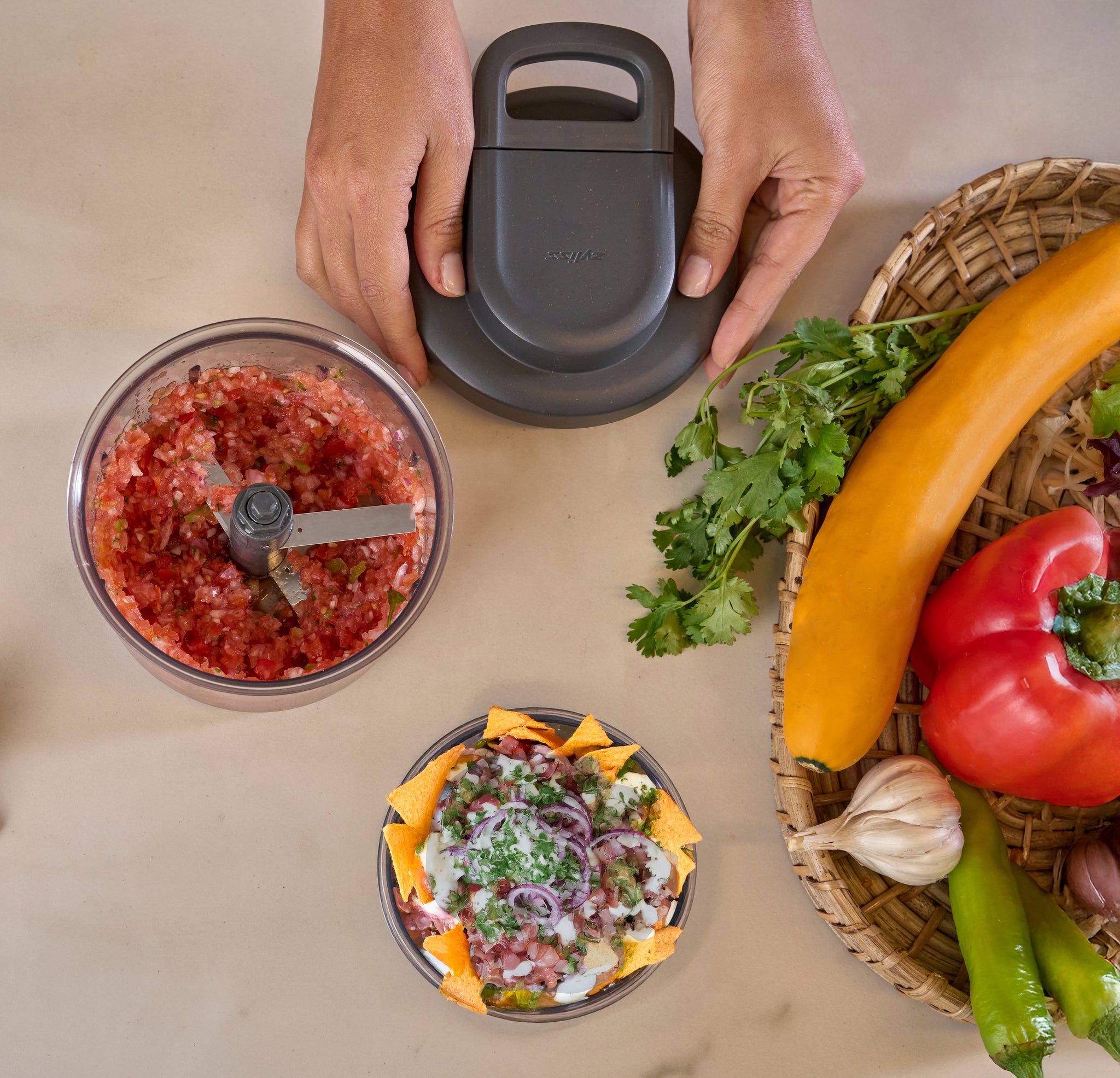 It’s also ideal for chopping onions and garlic without tears, whipping up flavourful mince for burgers or meatballs, blitzing breadcrumbs or mixing add-ins for homemade cookies. Its compact design even makes it easy to bring straight to the table or outdoor gatherings for on-the-spot prep. You’ll save time on prep and cleanup—without compromising freshness