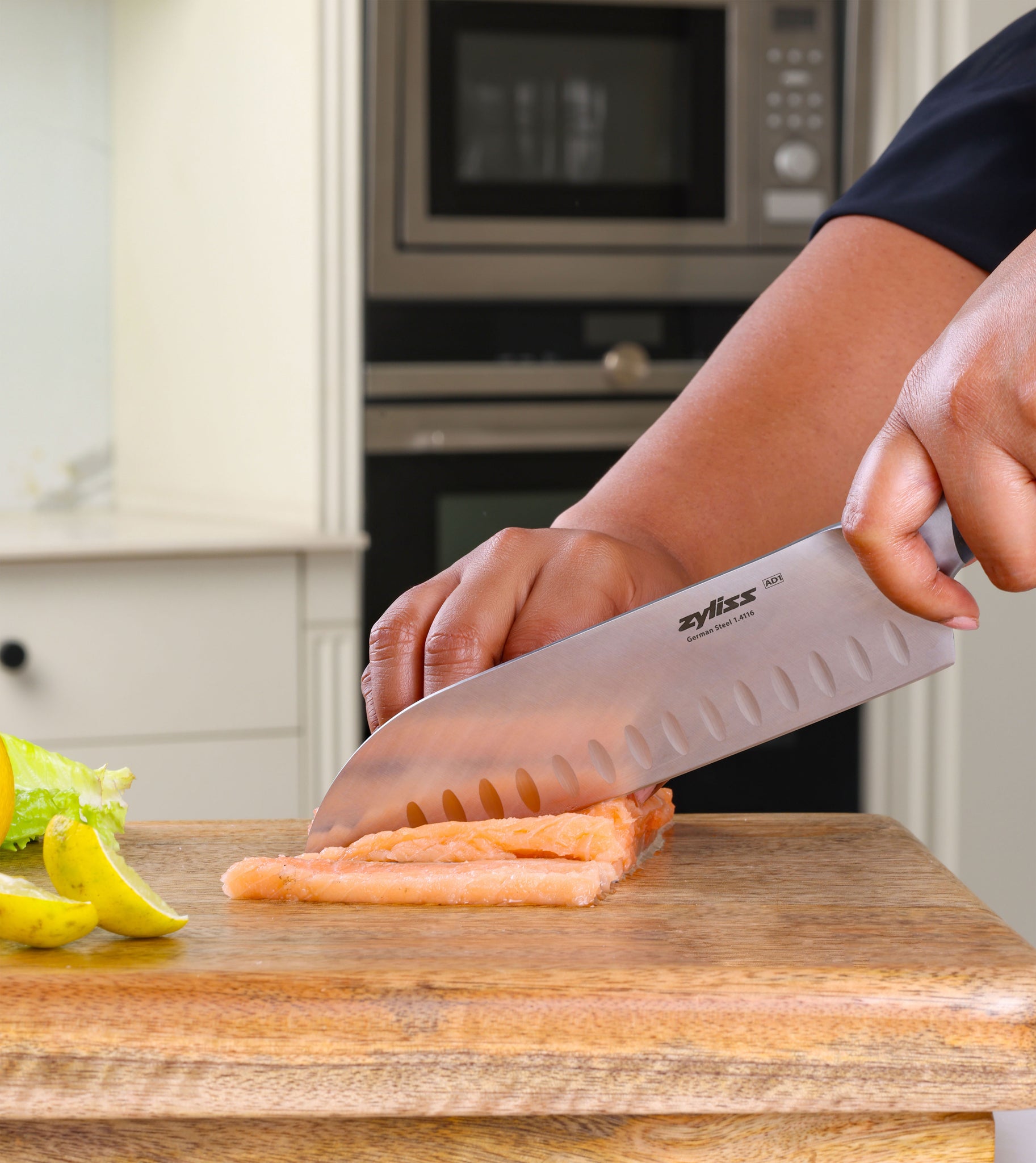 From finely dicing onions to chopping herbs or slicing meat, the Zyliss Comfort Pro Santoku Knife makes everyday cooking effortless. Its wide, sharp blade glides through ingredients with ease, while the indents prevent food from clinging as you work.