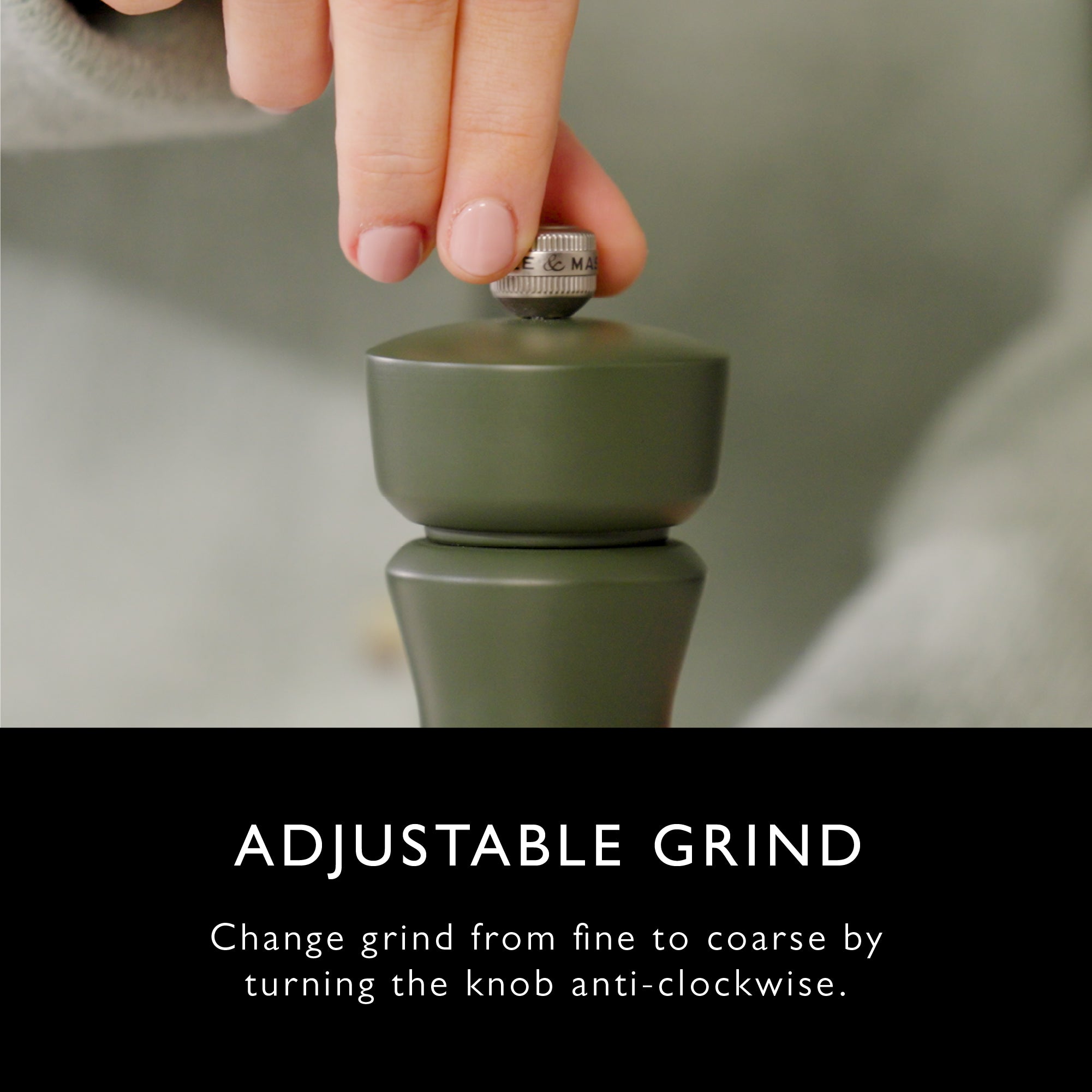 Designed with a ceramic mechanism suitable for both salt and pepper, each mill offers full flexibility thanks to interchangeable knobs – ideal for identifying contents and mixing colours across the range.