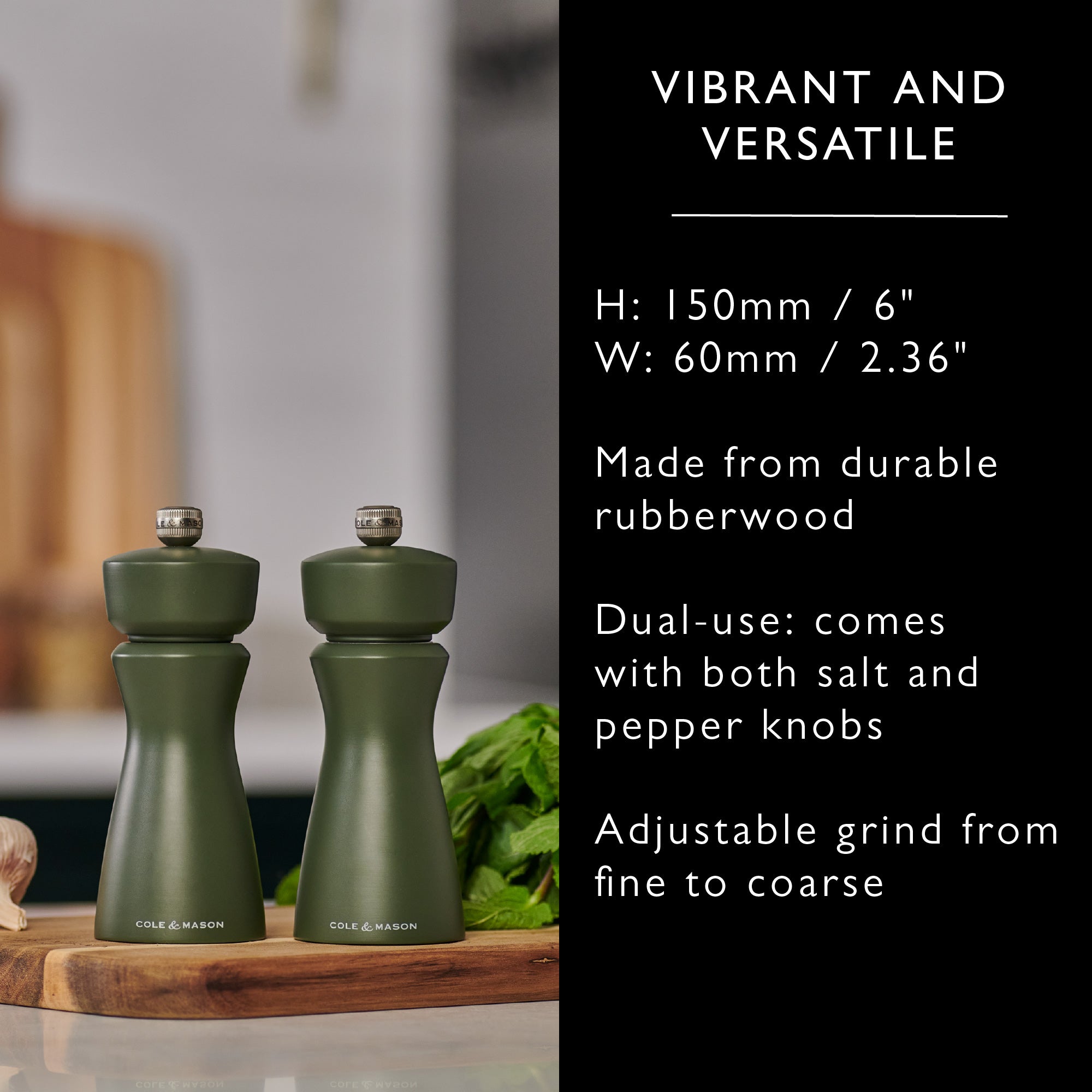 The Kenton Rosemary Salt & Pepper Mill is where versatility meets serene style. Its soft rosemary green finish adds a fresh, natural touch to any kitchen or dining setting.