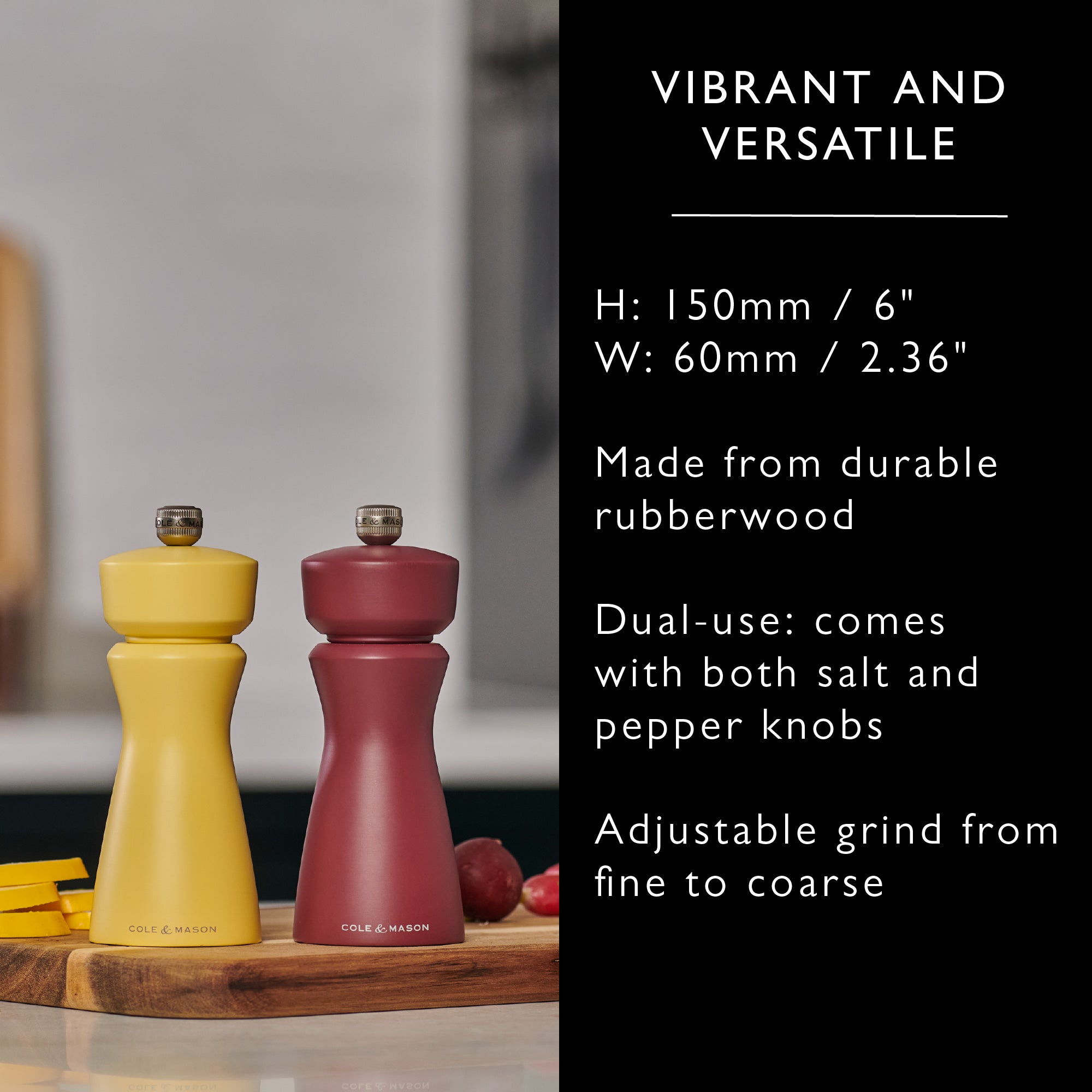 The Kenton Salt and Pepper Mill in Turmeric yellow finish brings a burst of colour to your kitchen. It’s as bold as it is functional. Inside, a robust ceramic mechanism allows for smooth grinding of either salt or pepper.