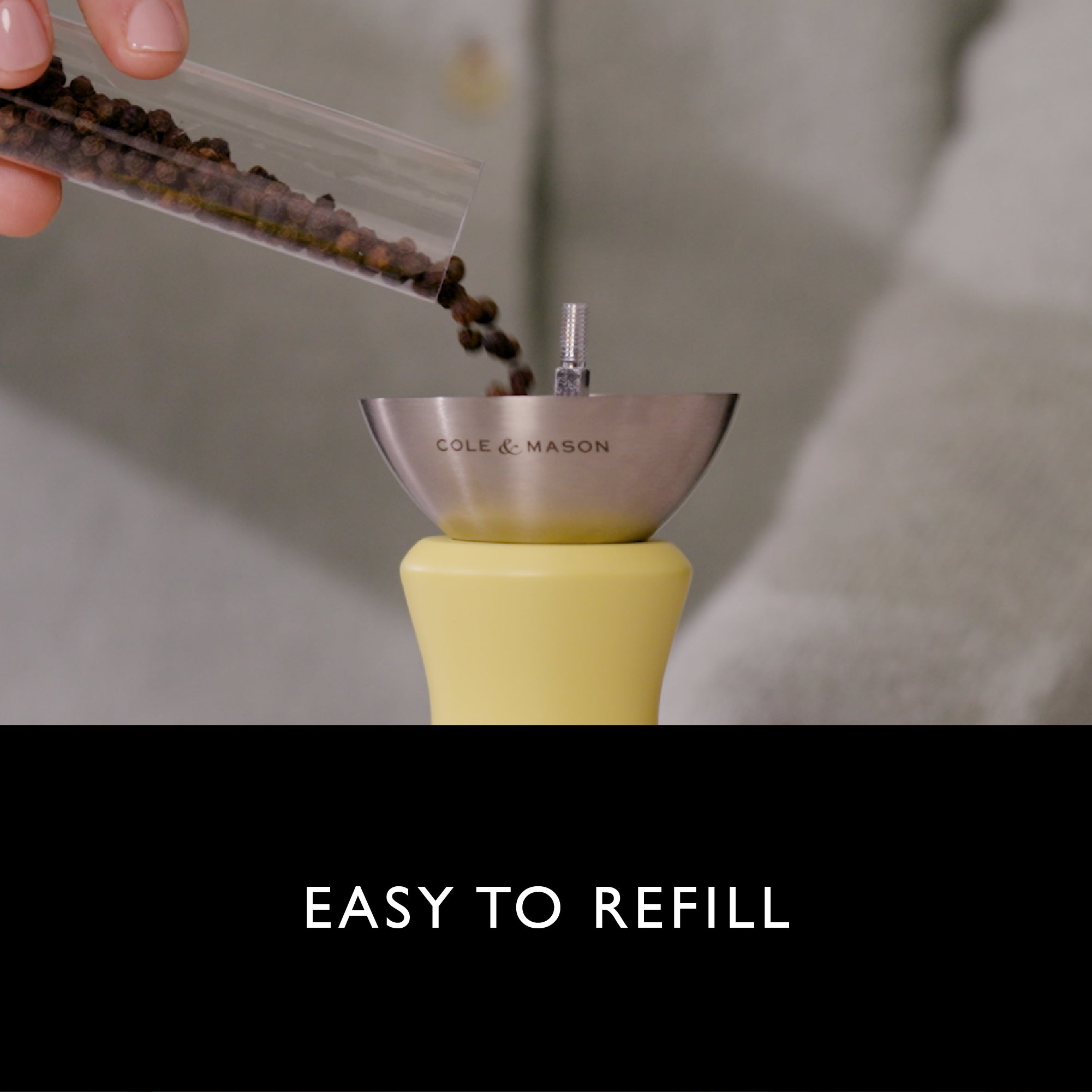 Brighten up your table with the Kenton Turmeric Yellow Finish Mill – sold as a single mill, customisable and unfilled, with a durable ceramic mechanism..