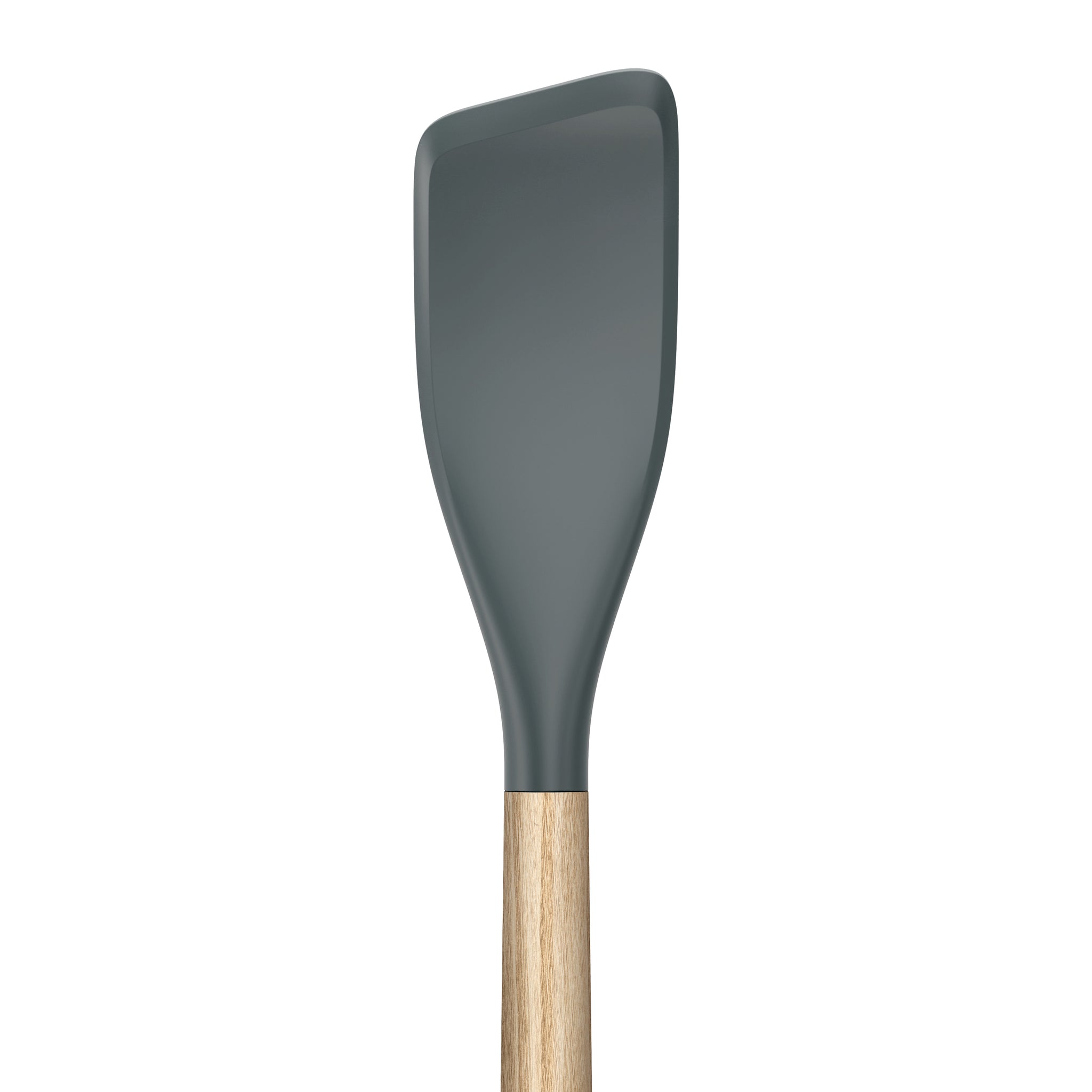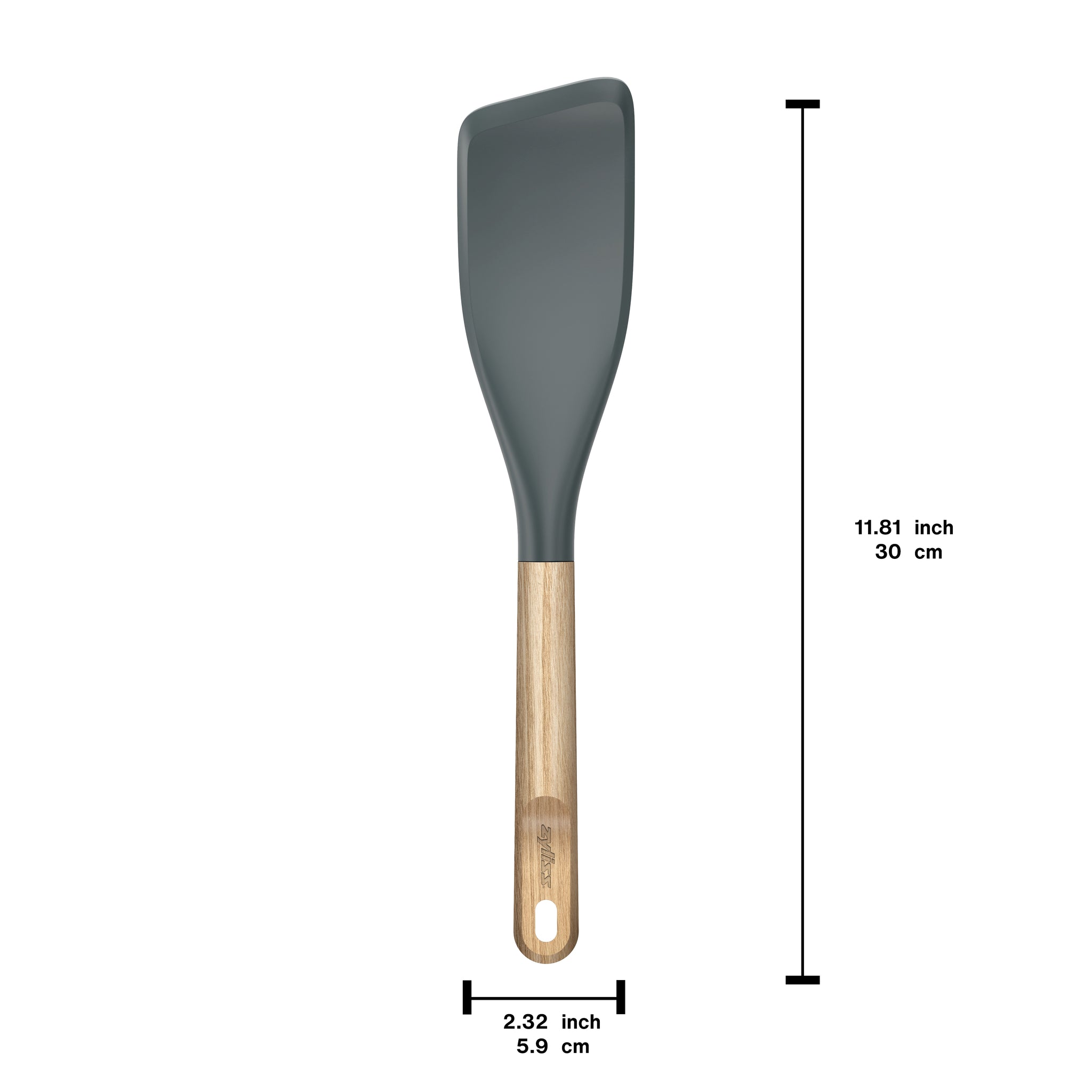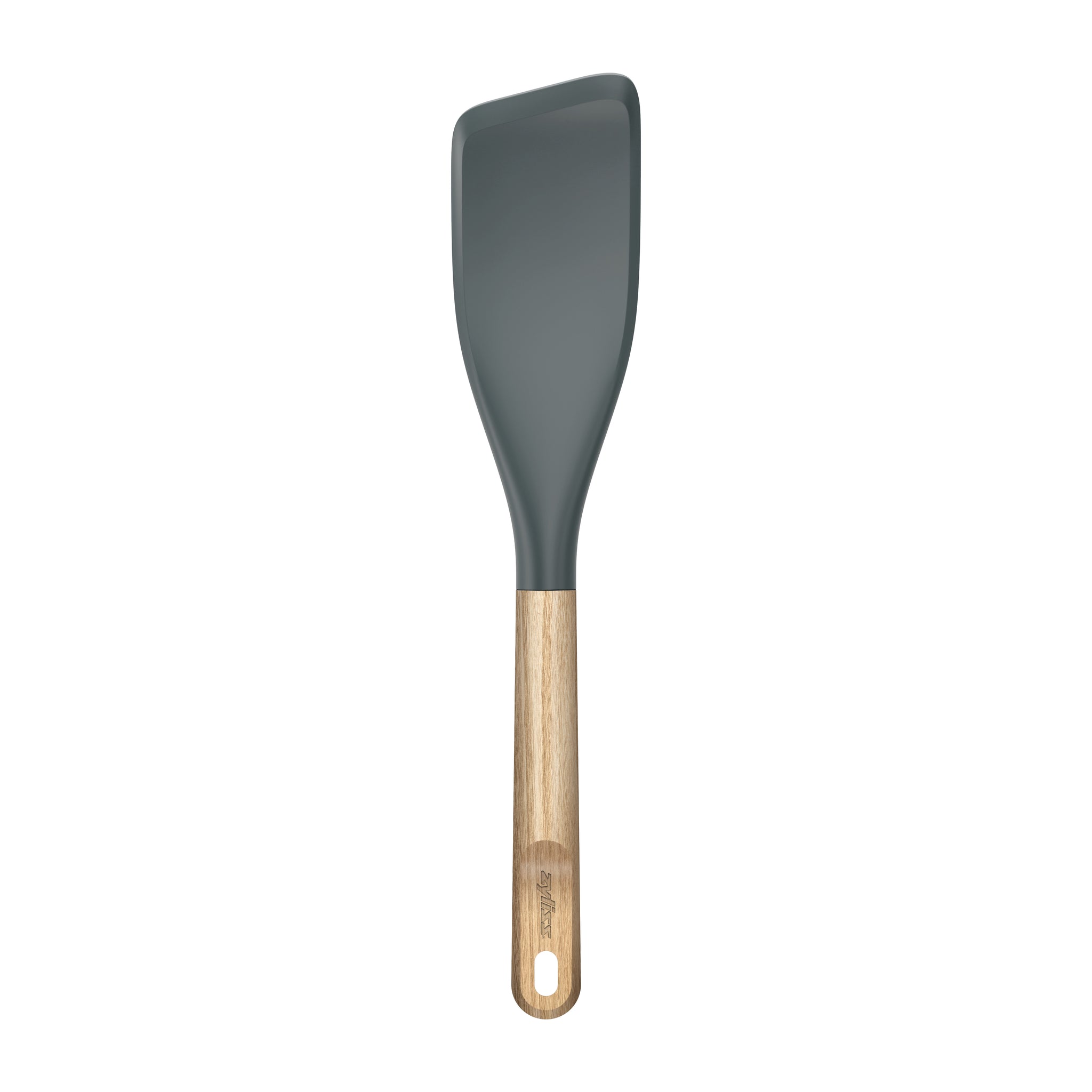 The flexible silicone head is heat resistant up to 240°C / 464°F and reinforced with a PBT core rated to 200°C / 392°F, providing strength and precision. The thin, tapered edge slides easily under delicate foods without tearing and is safe for use on non-stick cookware.