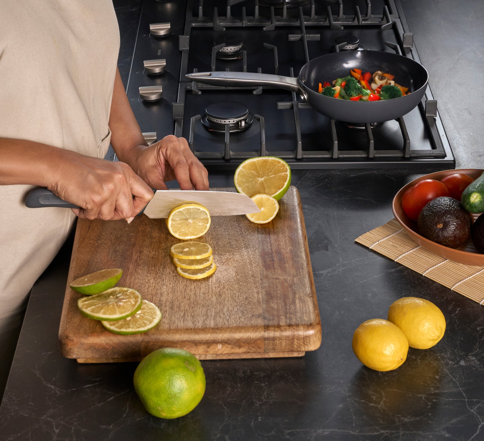 Designed for smooth, clean cuts and comfortable handling, it’s fitted with a lightweight, sustainable wheat straw handle that reduces plastic use by up to 20%. Built for performance and backed by a 5-year guarantee, it’s a dependable tool for every kitchen task.