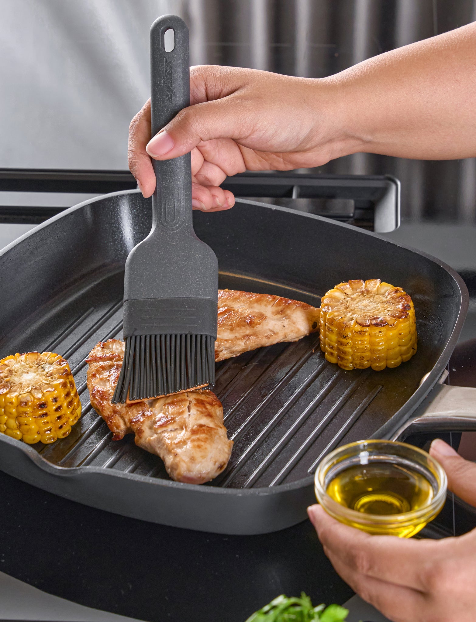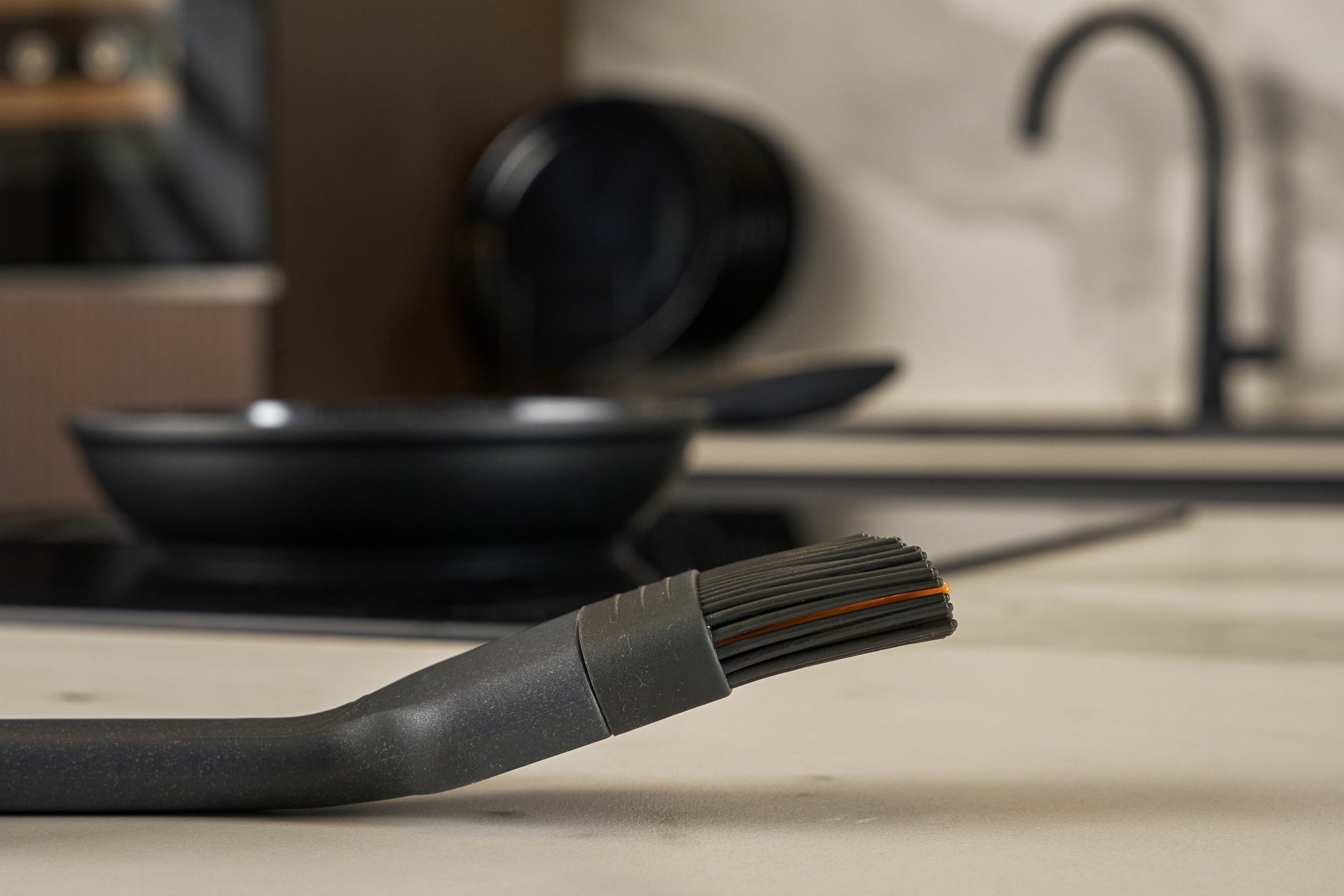 - Durable, heat-resistant silicone bristles—safe to use on hot pans and grills
