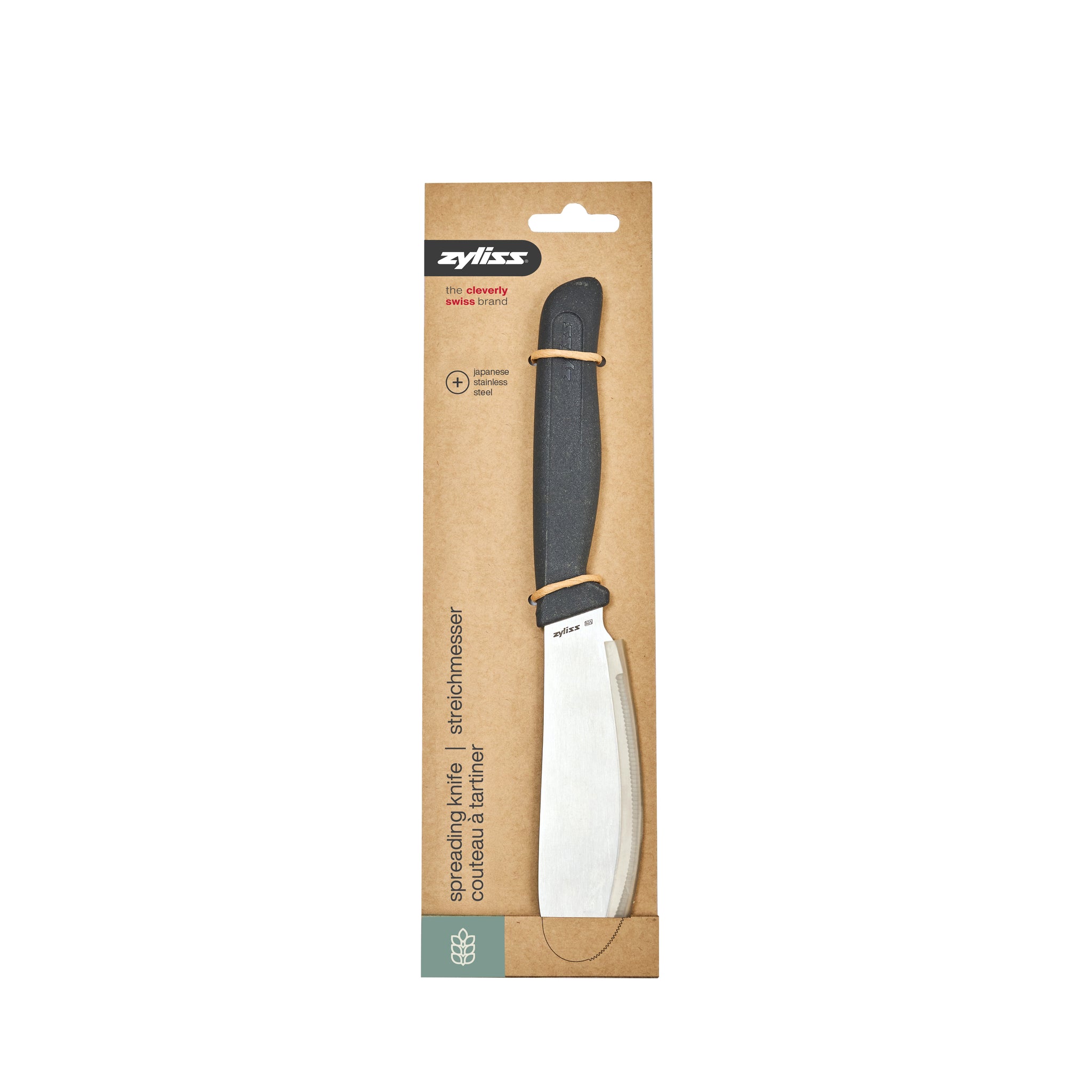 The Zyliss Spreading Knife is crafted for smooth, mess-free spreading and light slicing tasks. Its wide, flexible stainless steel blade – measuring 120 mm / 4.72 in – glides effortlessly across bread, pastries, and soft foods, making it ideal for butter, jam, cream cheese or dips.